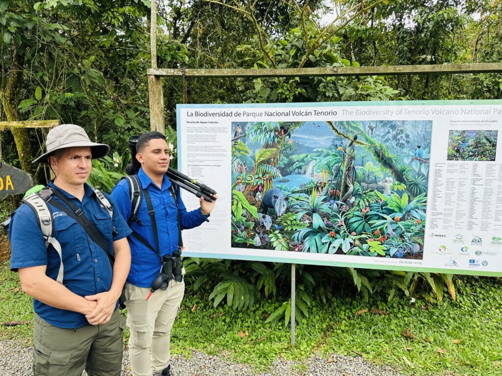 Esta zona también ofrece múltiples atractivos, aparte de conocer a la danta, entre ellos la visita al Parque Nacional Volcán Tenorio, hogar de la majestuosa catarata de Río Celeste. El parque cuenta con senderos que llevan hasta la catarata y los Teñideros, el lugar donde comienza la mágica transformación del color celeste de los más de 30 kilómetros de extensión del río. Las entradas debe comprarlas en la página del SINAC.